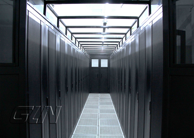 通道頂板有磁力鎖吸附在頂蓋邊框上,磁力鎖電源有消防系統控制,出現消防警報情況時,機房消防系統強制關閉電源,頂蓋在重力作用下打開,對冷通道區域進行氣體消防,安全可靠;